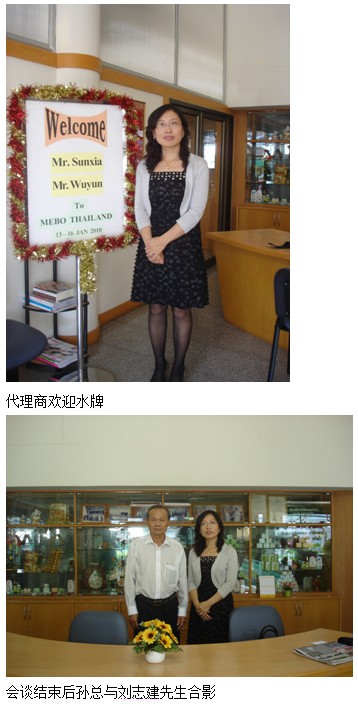 1月14日,孫總與泰國代理商劉志建先生于MEBO(Thailand)公司就泰國美寶市場拓展規(guī)劃進(jìn)行了親切的商務(wù)會談。雙方回顧了美寶泰國的發(fā)展歷程,劉先生深情地介紹了早年協(xié)助發(fā)展美寶的艱辛經(jīng)歷,美寶燒傷膏是泰國第一個正式注冊的中國藥品,這是美寶的驕傲,也是中國的驕傲。近幾年祖國的強(qiáng)大使所有的海外華人興奮不已,談到動情處時,擁有濃濃愛國熱情的劉先生幾度熱淚盈眶。與此同時,雙方深入地分析了多年來泰國美寶發(fā)展緩慢的狀況,并確定了下一步總體發(fā)展的發(fā)向和思路。此次高層會晤進(jìn)一步提升代理商對美寶總體海外規(guī)劃及技術(shù)產(chǎn)品的高度認(rèn)可和理解,在技術(shù)產(chǎn)品發(fā)展理念、經(jīng)銷商經(jīng)營掌控等方面達(dá)成了多項共識。