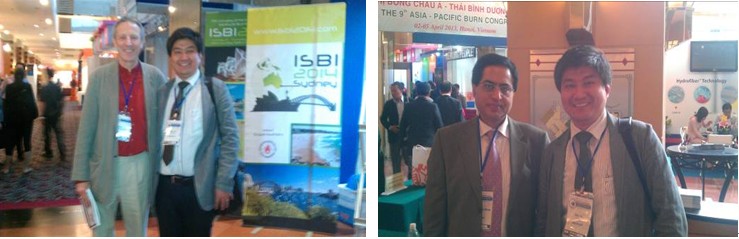開幕式及第一天上午的主題演講結束后,舒葉遇見了來自香港、印度、馬來西亞、菲律賓、印尼等國家的燒傷專家們。他們都有著多年實踐再生醫(yī)療技術的經(jīng)歷,并且正在各自的醫(yī)院積極推廣再生醫(yī)療技術的應用。來自香港的Prof. Burd是ISBI組委會的執(zhí)行委員,主要負責全球燒傷預防的相關工作。他提出的燒傷數(shù)據(jù)回顧性研究在實際應用中有多少價值以及如何利用這些回顧性研究成果在ISBI主席的致辭中被屢次提到??吹酱髸粘瘫碇性?月4日安排有再生醫(yī)療技術激活K-19干細胞的研究成果,表現(xiàn)出極大地興趣,在詳細閱讀了演講摘要后,期望能夠馬上聽到、看到相關實驗結果。Prof. Burd可以說是美寶十多年的老朋友,對美寶的發(fā)展一直都很關注,并且給予大力地支持。在2012年愛丁堡會議中,他曾和美寶國際市場集團總裁孫霞女士共同主持美寶專題研討會。