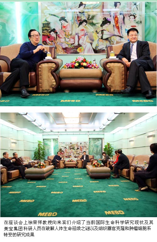 虎尾之年玉兔迎春,在世界生命科學(xué)界熱論人體生命再生延續(xù)秘密的濃厚學(xué)術(shù)氣氛中,應(yīng)美寶國(guó)際集團(tuán)董事局主席徐榮祥教授的邀請(qǐng),中國(guó)醫(yī)師協(xié)會(huì)常務(wù)副會(huì)長(zhǎng)兼秘書長(zhǎng)楊鏡教授、副會(huì)長(zhǎng)蔡忠軍教授、陸君副秘書長(zhǎng)、編輯部肖先福主任、辦公室袁亞明主任等一行5人于12月23日蒞臨美寶集團(tuán)總部參觀指導(dǎo)。