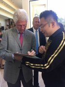 中秋節(jié)前徐鵬剛剛專程前往內華達州出席了克林頓夫婦在一場活動中提前為他準備的生日慶祝會,徐鵬與克林頓老友見面,相談甚歡,也交流了徐榮祥基金會去意大利地震災區(qū)探望之旅的情況??肆诸D欣然提筆在徐鵬生日賀卡上簽名留念。