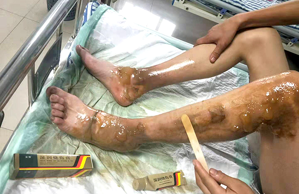 地震核心區(qū)宜賓礦山急救醫(yī)院外科主任、四川省中西醫(yī)結(jié)合學(xué)會燒傷與創(chuàng)面修復(fù)專委會常委繆浩主任應(yīng)用再生醫(yī)療技術(shù)救治受傷群眾。