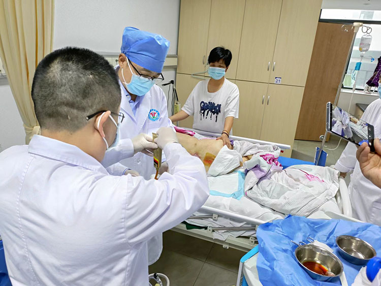 2023年4月8日,應(yīng)南通市通州區(qū)第三人民醫(yī)院之邀,再生醫(yī)學知名專家、《中國燒傷創(chuàng)瘍雜志》常務(wù)編委趙瑞慶主任在該院會診了2例患者(下肢骨折內(nèi)固定術(shù)后皮膚感染1例、左手背皮膚外傷組織缺損1例),并針對性地對科室骨干進行了“再生技術(shù)治療急慢性創(chuàng)面修復”的培訓,使大家在開拓視野的同時感受到理論與臨床實踐相結(jié)合的益處,得到醫(yī)護人員的一致好評!