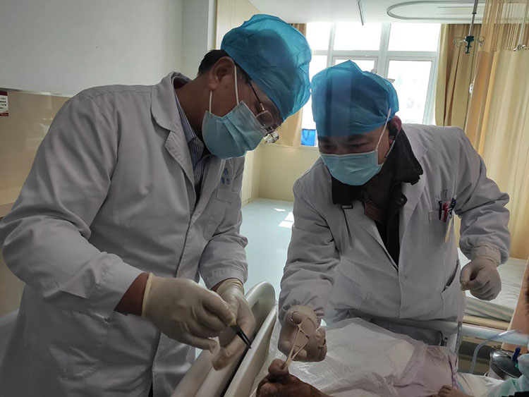 4月6日,應(yīng)科左后旗醫(yī)院邀請,北京宣武中醫(yī)院張勇主任來到在美麗的科爾沁大草原,在醫(yī)院骨外科進行再生醫(yī)療技術(shù)學術(shù)交流活動。學術(shù)交流得到了醫(yī)院領(lǐng)導班子大力支持,會議由主管院長張愛民院長主持??剖抑魅巍⑨t(yī)生對再生醫(yī)療技術(shù)臨床療效給予高度認可和評價!學術(shù)交流后,張勇主任和醫(yī)院領(lǐng)導一起到科室,為幾例慢創(chuàng)病人會診和指導,張主任親自操作示范換藥,講解規(guī)范換藥細節(jié),旨在提升慢創(chuàng)救治能力,充分發(fā)揮再生醫(yī)療技術(shù)創(chuàng)面修復的示范引領(lǐng)作用,最大限度降低慢創(chuàng)患者的死亡率和致殘率,確保慢性患者得到高效的救治。