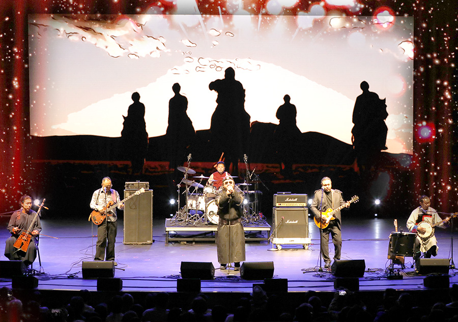 晚會在一曲激昂的《初升的太陽》中拉開帷幕,杭蓋樂隊以其天籟之音瞬間將觀眾帶入廣袤的草原,讓人仿佛感受到了來自中國內(nèi)蒙古的淳樸與熱情。隨后,杭蓋樂隊又帶來了《希格希日》和《鴻雁》兩首經(jīng)典曲目,將蒙古民間音樂與當(dāng)代搖滾巧妙融合,展現(xiàn)出國際化的民族搖滾風(fēng)格,為晚會增添了濃厚的文化色彩。最后更是以一首《酒歌》引來全場轟動與共舞,開場即將晚會推向高潮。