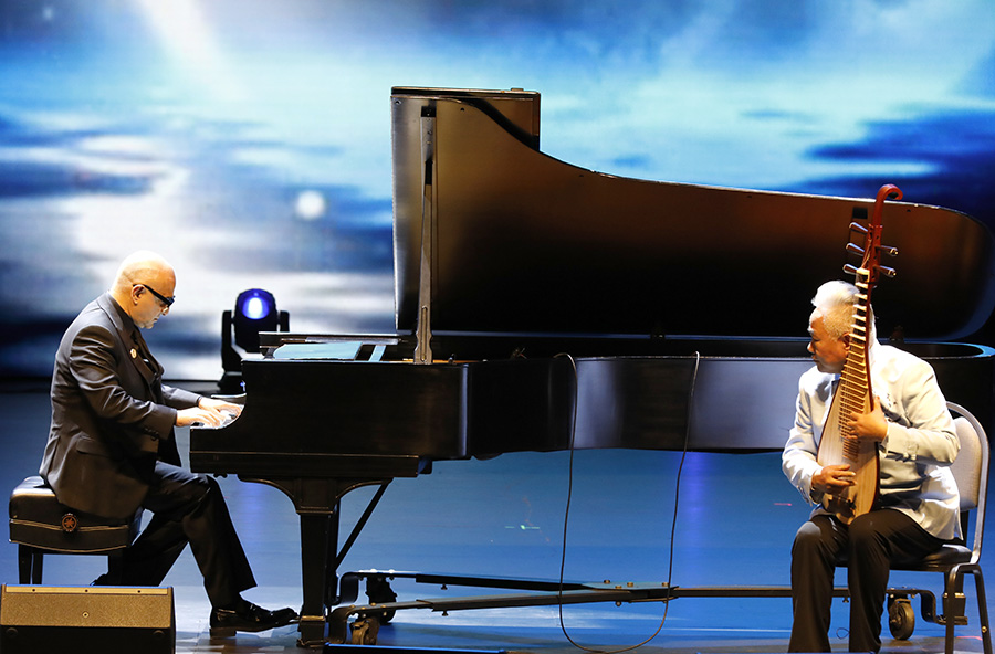 作為晚會亮點之一,格萊美音樂大獎得主奧瑪爾攜手中國國樂界的泰斗方錦龍,共同登臺,開啟了一場跨越東西、融匯古今的音樂盛宴與深度對話。奧瑪爾先以他的經(jīng)典之作《Take My Hand》為引子,引領(lǐng)全場觀眾穿越至一個絢爛多彩、異域風(fēng)情濃厚的音樂幻境。隨后,他與方錦龍攜手合作,以《玄鳥》為曲目巧妙地將中西樂器之聲交織在一起,展現(xiàn)了兩種文化和諧共生、交相輝映的獨特藝術(shù)魅力。緊接著,方錦龍再以一曲獨奏《春江花月夜》將晚會推向了高潮。那悠揚婉轉(zhuǎn)的旋律展現(xiàn)了國樂的深邃意境與無窮魅力,深深觸動了每一位聽眾的心弦。