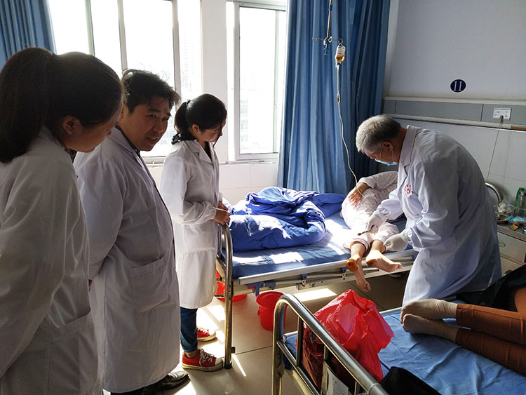 11月6日,中國中西醫(yī)結(jié)合學(xué)會燒傷專業(yè)委員會金黨軍教授來鄂州市中醫(yī)醫(yī)院外科會診壓瘡患者。