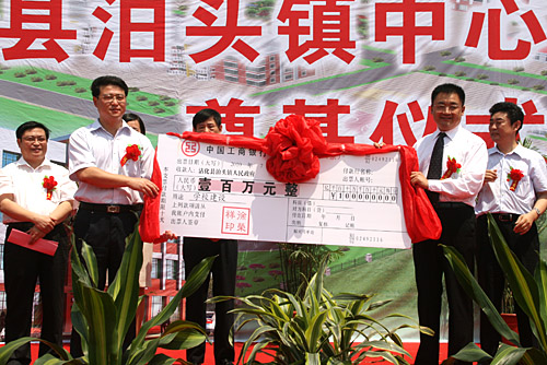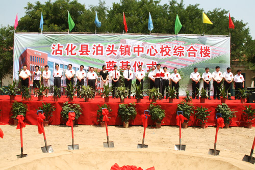 7月6日上午10時,山東省濱州市沾化縣泊頭鎮(zhèn)小學(xué)內(nèi)到處洋溢著熱烈的氣氛,由美寶國際集團(tuán)董事局主席徐榮祥教授捐資一百萬,當(dāng)?shù)卣?guī)劃建設(shè)的中心小學(xué)奠基儀式在此隆重舉行。