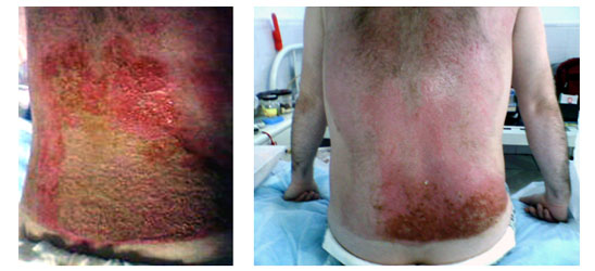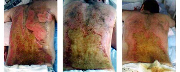 就這樣,丹尼爾留在汕頭海軍醫(yī)院燒傷創(chuàng)瘍治療中心接受治療。一位燒傷面積大約12%(淺II度4%、深I(lǐng)I度5%、淺III度3%)的嚴(yán)重?zé)齻颊?,?jīng)全體醫(yī)務(wù)人員的精心治療護(hù)理和中國(guó)燒傷創(chuàng)瘍科技中心臨床總部的陳永翀主任的多次電話會(huì)診和指導(dǎo),丹尼爾順利而無痛苦的度過了皮膚燒傷治療的滲出、液化和再生修復(fù)期。由于得到及時(shí)有效的治療,背部的深Ⅱ度創(chuàng)面在住院后的25天就長(zhǎng)出跟他以前一模一樣的皮膚(生理性愈合),腰部的淺Ⅲ度創(chuàng)面也在接受治療后的第45天無植皮、無疤痕愈合(再生修復(fù))?,F(xiàn)在背的皮膚彈性良好,受傷前有毛的部位現(xiàn)在也恢復(fù)了原狀。再一次證明燒傷皮膚再生醫(yī)學(xué)技術(shù)不僅適合黃種人,而且對(duì)白種人的深度皮膚燒傷同樣是非常有效的。
