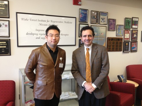 美國頂級再生醫(yī)學(xué)研究機構(gòu),首創(chuàng)組織工程技術(shù)的維克森林(wake forest university)再生醫(yī)學(xué)研究所所長Atala博士獲悉美寶國際董事長徐榮祥教授的器官再生應(yīng)用研究后很感興趣,特此于2013年4月11日邀請美國美寶國際美國總裁和再生X基金會創(chuàng)始人徐鵬先生訪問其再生醫(yī)學(xué)研究所,徐鵬于近日已對維克森林再生醫(yī)學(xué)研究所進行了訪問。訪問情況報道如下: