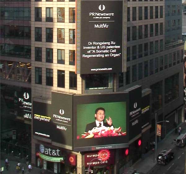 路透社紐約時代廣場報道徐榮祥發(fā)明體細胞再生器官