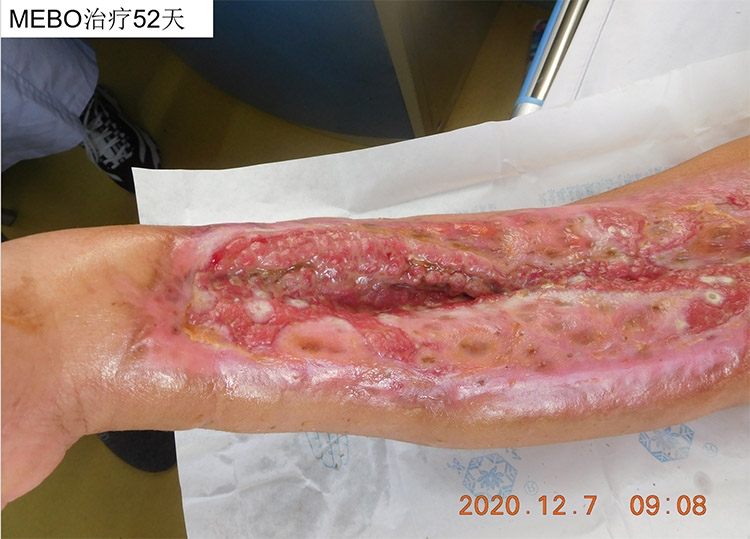 患者右上肢被機器絞傷10天、加重5天后,于10月16 日,來到北京南苑醫(yī)院燒傷創(chuàng)瘍科,當(dāng)時右上肢廣泛皮膚軟組織絞挫撕脫傷并感染、右側(cè)橈骨中遠段多發(fā)開放性骨折、右尺骨莖突骨折。北京南苑醫(yī)院燒傷創(chuàng)瘍科采用了燒傷創(chuàng)瘍再生醫(yī)療技術(shù),在原位培養(yǎng)皮膚組織器官再生,并配合微粒皮移植術(shù)以加速創(chuàng)面愈合。這位在外院多家大醫(yī)院均被告知需要截肢的病人在南苑醫(yī)院不僅成功保住了肢體,還恢復(fù)了部分功能并在進一步康復(fù)中,已于12月10出院。
