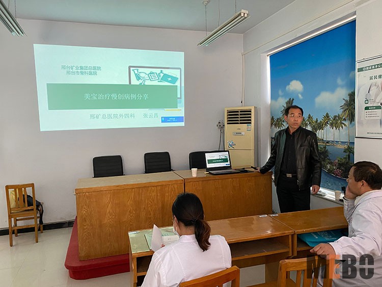 11月1日,應(yīng)隆堯縣大張家莊鄉(xiāng)衛(wèi)生院邀請(qǐng),邢臺(tái)礦業(yè)集團(tuán)總醫(yī)院普外科張?jiān)撇魅?,為該院及周邊衛(wèi)生院和基層診所醫(yī)生,進(jìn)行了《燒傷創(chuàng)瘍?cè)偕t(yī)療技術(shù)培訓(xùn)》,張主任以實(shí)際病例講解,為參會(huì)醫(yī)生分享了自己在治療難愈合創(chuàng)面中的臨床經(jīng)驗(yàn)以及再生醫(yī)療技術(shù)在治療難愈合創(chuàng)面的優(yōu)勢(shì),會(huì)后張主任與醫(yī)生進(jìn)行了學(xué)術(shù)交流,參會(huì)人員均表示收獲滿滿!