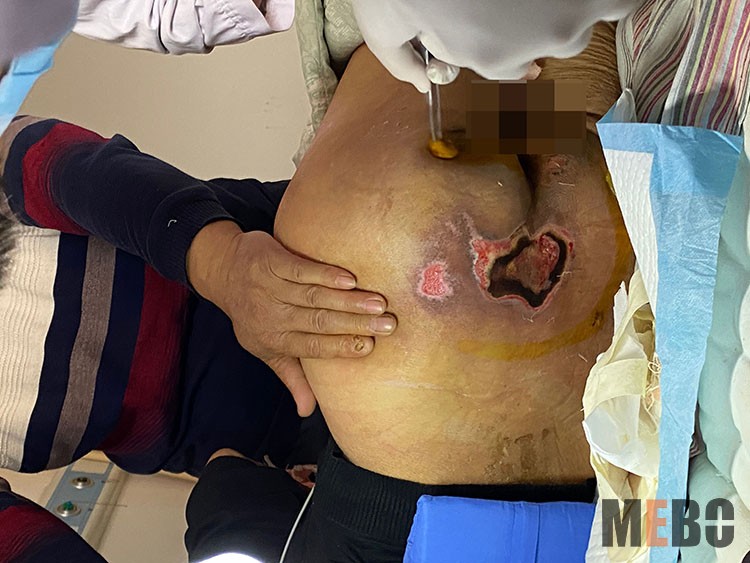 11月8-9日,再生醫(yī)學(xué)知名專家、《中國(guó)燒傷創(chuàng)瘍雜志社》常務(wù)編委趙瑞慶主任應(yīng)邀到如皋市人民醫(yī)院、如皋市中醫(yī)院會(huì)診了兩例慢創(chuàng)患者。一例為42歲男性外傷所致截癱9年,左臀部滑襄型4*4*6cm褥瘡,曾到上海醫(yī)治未愈。另一例為90歲女性老人,左骼外側(cè)10*5*3cm潰瘍型褥瘡。趙教授實(shí)地演示了再生技術(shù)操作程序,并與當(dāng)?shù)蒯t(yī)務(wù)人員深入溝通,針對(duì)慢性創(chuàng)面治療的特殊情況,做了進(jìn)一步的指導(dǎo)。