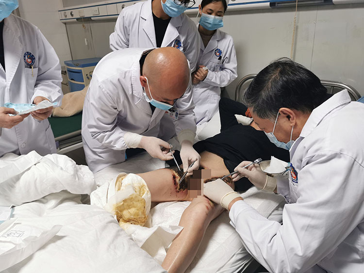 11月17日,享受國(guó)務(wù)院特殊津貼專家、中國(guó)中西醫(yī)結(jié)合燒傷專業(yè)委員會(huì)顧問、中國(guó)研究型醫(yī)院學(xué)會(huì)創(chuàng)面防治與損傷組織修復(fù)專業(yè)委員會(huì)委員、中國(guó)中西醫(yī)結(jié)合學(xué)會(huì)再生醫(yī)療技術(shù)委員會(huì)創(chuàng)瘍學(xué)組首席專家、《中國(guó)燒傷創(chuàng)瘍雜志》常務(wù)編委、成都市郫都區(qū)人民醫(yī)院燒傷創(chuàng)瘍科學(xué)術(shù)帶頭人付子俊教授應(yīng)惠水縣中醫(yī)院的邀請(qǐng),到該院會(huì)診兩名燒傷病人,付教授親自進(jìn)行手術(shù),換藥,并結(jié)合病人給出治療方案,極大增強(qiáng)了該院應(yīng)用再生醫(yī)療技術(shù)的信心。
