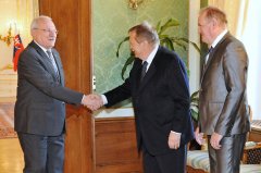 斯洛伐克共和國總統(tǒng)I. Gasparovic(左三)與IEF俱樂部成員進(jìn)行會(huì)談。