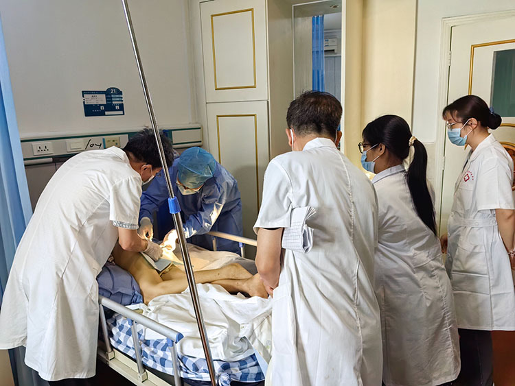 7月6日—9日,《中國(guó)燒傷創(chuàng)瘍雜志》編委、燒傷創(chuàng)瘍?cè)偕t(yī)療技術(shù)臨床專家金黨軍,和江西辦事處主任陳立新來到了贛州市,同贛州市負(fù)責(zé)人肖曉春一起走訪了寧都縣城北醫(yī)院,寧都縣中醫(yī)院,于都縣人民醫(yī)院,于都縣中醫(yī)院,南康區(qū)第一人民醫(yī)院,南康區(qū)中醫(yī)院,同主任以及醫(yī)生進(jìn)行了深入交流。期間在各醫(yī)院的外科燒外創(chuàng)面修復(fù)科的主任和醫(yī)生的邀請(qǐng)下一同會(huì)診了幾例壓瘡、燒傷及糖尿病足病人并親自使用再生醫(yī)療技術(shù)示范規(guī)范換藥,獲得了醫(yī)生和病人及家屬的一致好評(píng)和稱贊。