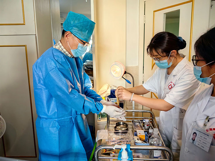 7月11日,中國(guó)中醫(yī)藥高等教育學(xué)會(huì)臨床教育研究會(huì)肛腸分會(huì)常務(wù)理事、北京中西醫(yī)結(jié)合學(xué)會(huì)燒傷專業(yè)委員會(huì)副主任委員、北京中醫(yī)藥學(xué)會(huì)肛腸專業(yè)委員會(huì)委員、《中國(guó)燒傷創(chuàng)瘍雜志》常務(wù)編委張勇,應(yīng)邀來到包頭惠健康中醫(yī)蒙醫(yī)醫(yī)院進(jìn)行學(xué)術(shù)培訓(xùn),詳細(xì)講解難愈合創(chuàng)面治療全過程及規(guī)范用藥,并帶領(lǐng)醫(yī)護(hù)人員查房會(huì)診病人指導(dǎo)用藥,醫(yī)護(hù)人員受益匪淺。