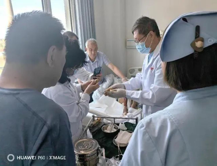 2023年6月27日,《中國(guó)燒傷創(chuàng)瘍雜志》編委、燒傷創(chuàng)瘍?cè)偕t(yī)療技術(shù)臨床專家張強(qiáng)受銅陵市第二人民醫(yī)院邀請(qǐng),前往醫(yī)院會(huì)診多例壓創(chuàng)患者,對(duì)患者創(chuàng)面進(jìn)行檢查,指導(dǎo)示范換藥,并詳細(xì)講解進(jìn)一步治療方案,受到醫(yī)院領(lǐng)導(dǎo)和患者家屬的高度認(rèn)可。