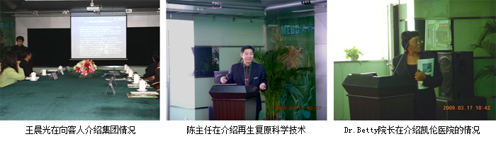 2009年3月18日上午9時(shí),肯尼亞凱倫醫(yī)院的院長(zhǎng)、兒童心臟病專家Dr. Betty M. Gikonyo及其助手和翻譯一行3人,按照預(yù)先約好的時(shí)間準(zhǔn)時(shí)來(lái)到了人體組織器官原位再生復(fù)原技術(shù)的發(fā)源地——美寶國(guó)際集團(tuán)總部。北京榮祥再生醫(yī)學(xué)研究所副所長(zhǎng)、中國(guó)燒傷創(chuàng)瘍科技中心臨床部主任、集團(tuán)國(guó)際部專家陳永翀主任及助手王鶴和王晨光,代表集團(tuán)熱情接待了遠(yuǎn)道而來(lái)的客人。