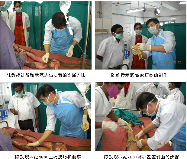 隨著徐榮祥教授發(fā)明的燒傷再生醫(yī)學在國際上的影響力和知名度的擴大,越來越多的國家希望早日引進再生醫(yī)學技術(shù)和配套產(chǎn)品-----美寶濕潤燒傷膏(MEBO),印度便是其中之一。為了盡快引進MEBO,經(jīng)印度藥監(jiān)局(DCGI)的批準,MEBO在印度的III期臨床試驗于2010年7月正式啟動并在各級醫(yī)院逐步展開。為了保證臨床試驗的安全、順利進行和對新增加的2家大型政府醫(yī)院的燒傷中心的參研人員進行培訓,同時也是應印度燒傷整形外科學會主席、欽奈醫(yī)學院附屬醫(yī)院燒傷中心主任Jayaraman教授的邀請,2010年年末,中國燒傷創(chuàng)瘍科技中心臨床部主任、北京榮祥再生醫(yī)學研究所副所長陳永翀教授和技術(shù)支持專員張印來到了Chennai市醫(yī)學院附屬醫(yī)院(KMC)和Madurai市醫(yī)科大學附屬醫(yī)院,向臨床醫(yī)護人員介紹了燒傷再生醫(yī)學研究應用新進展,對參與臨床試驗的人員進行了培訓,并指導臨床試驗工作等。再生醫(yī)學的先進性、實用性、有效性和便于掌握等,很受印度臨床醫(yī)師的歡迎,目前臨床試驗正在有序進行,并取得了初步的成功。現(xiàn)給讀者做一個簡短的介紹: