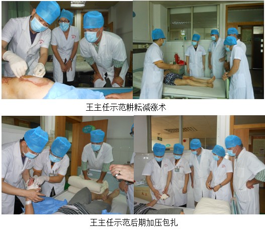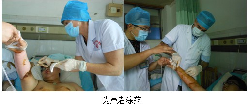 5月18號在前兩天學(xué)習(xí)參觀基礎(chǔ)之上,新西蘭一行人終于開始了再生醫(yī)療技術(shù)的實踐。在劉大夫的指導(dǎo)下,新西蘭醫(yī)生護(hù)士迫不及待的開始了實踐操作,其中包括深二度創(chuàng)面換藥流程,創(chuàng)面清理標(biāo)準(zhǔn)流程,腐皮去除時機(jī)與方法,涂藥原則等,同時還包括糖尿病足創(chuàng)面換藥流程,注意事項等操作規(guī)范。在此期間又參觀了新入院金屬熱液大面積燙傷患者的初期處理包括深度創(chuàng)面的耕耘減張術(shù)等常規(guī)處理原則。通過實踐醫(yī)生護(hù)士更深刻的體會到了再生醫(yī)療技術(shù)在減輕患者痛苦與經(jīng)濟(jì)負(fù)擔(dān)方面的優(yōu)越性與治療難愈性創(chuàng)面的獨特性等優(yōu)點。