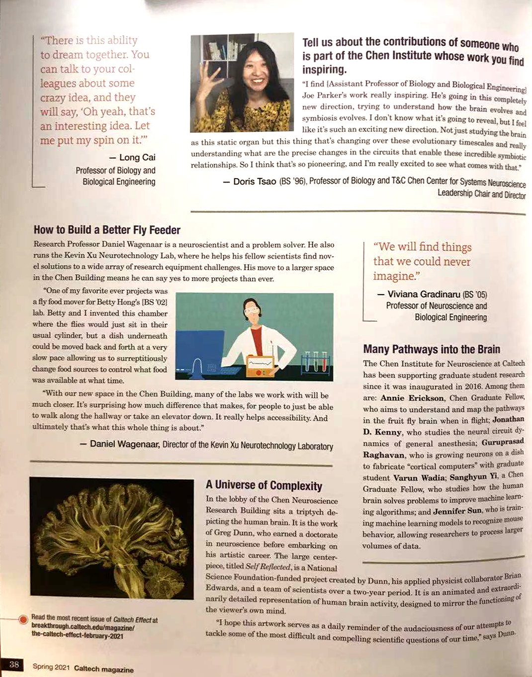 日前,加州理工(Caltech)春季??l(fā)表 “構(gòu)建神經(jīng)網(wǎng)絡(luò)”一文,特別介紹了加州理工大學(xué)徐鵬神經(jīng)科技中心。