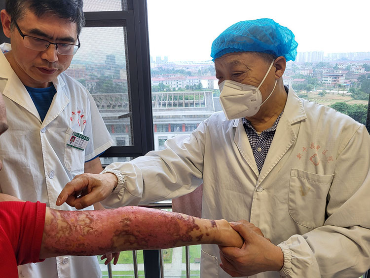 5月12日,中國中西醫(yī)結(jié)合學(xué)會燒傷專業(yè)委員會醫(yī)療部張強主任,受邀到訪武漢大學(xué)人民醫(yī)院經(jīng)開醫(yī)院中醫(yī)瘡瘍科會診壓瘡、下肢靜脈曲張血管性潰瘍、低溫燙傷等慢創(chuàng)患者,張主任示范了再生醫(yī)療技術(shù)規(guī)范清創(chuàng)、換藥及處理創(chuàng)面的技巧與細節(jié),會后同科室張成主任探討了患者的基礎(chǔ)病的治療與營養(yǎng)方案,針對不同的病情制定個性化治療方案。此次會診交流活動,促進了中醫(yī)藥傳承創(chuàng)新,提升了中醫(yī)藥在治療瘡瘍科疾病中的作用!