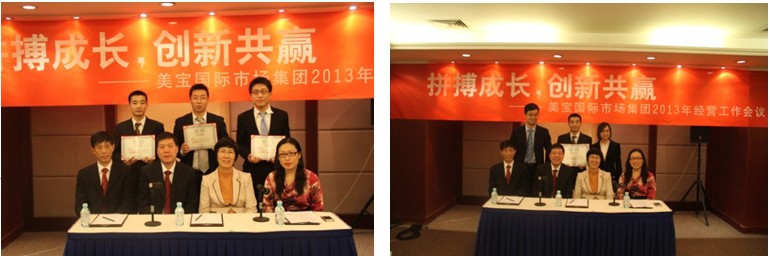 2013年1月7日國(guó)際市場(chǎng)集團(tuán)分會(huì)場(chǎng)繼續(xù)進(jìn)行大會(huì)議程,經(jīng)過(guò)嚴(yán)格績(jī)效考核和綜合測(cè)評(píng),對(duì)2012年度表現(xiàn)突出的員工予以表彰。下午13時(shí),美寶國(guó)際市場(chǎng)集團(tuán)總裁孫霞陪同大集團(tuán)經(jīng)營(yíng)班子:集團(tuán)總裁楊智斌、副總裁張倩、陳寶琪出席了國(guó)際市場(chǎng)集團(tuán)“杰出貢獻(xiàn)獎(jiǎng)”頒獎(jiǎng)儀式。
