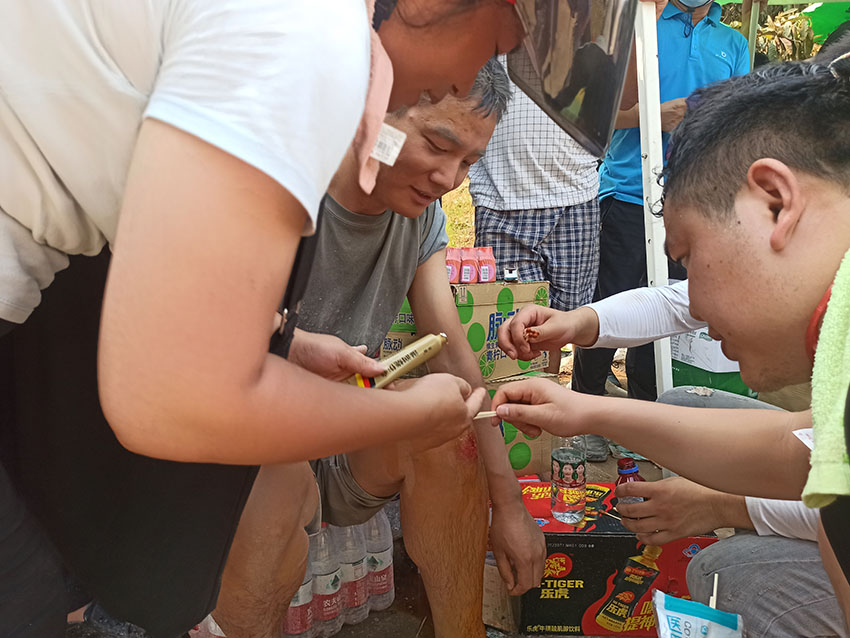 目前大部分山火已經(jīng)撲滅,但重慶北碚區(qū)和璧山區(qū)的山火控制起來(lái)非常困難。23日晚,山火沖破隔離帶,形勢(shì)嚴(yán)峻。高強(qiáng)度的滅火戰(zhàn)斗中救援人員承受著高溫天氣和烈火的雙重炙烤。一直在一線(xiàn)奮戰(zhàn)的醫(yī)療救護(hù)志愿者們,急需美寶濕潤(rùn)燒傷膏解決燒傷、曬傷及擦劃傷等問(wèn)題。美寶集團(tuán)緊急響應(yīng)即刻部署藥品捐贈(zèng)行動(dòng),重慶區(qū)第一時(shí)間籌集濕潤(rùn)燒傷膏,并組織人員用摩托車(chē)轉(zhuǎn)運(yùn)將藥品送到北碚區(qū)和璧山區(qū)救助點(diǎn)。美寶重慶區(qū)市場(chǎng)人員蔡春洋、李富等還留下來(lái)?yè)?dān)當(dāng)志愿者幫忙搬運(yùn)物資和疏散群眾。