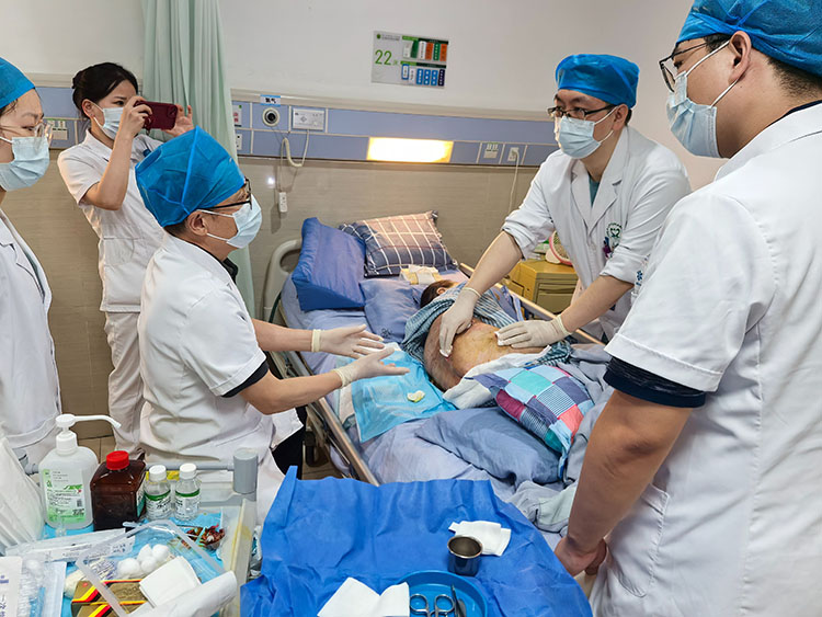 2024年6月5日,中國中西醫(yī)結(jié)合學(xué)會燒傷專業(yè)委員會常務(wù)委員、《中國燒傷創(chuàng)瘍雜志》副總編輯王洪生,應(yīng)邀到中山市人民醫(yī)院黃圃院區(qū)對一例難愈性創(chuàng)面的患者進(jìn)行會診,并親自清創(chuàng)及換藥,示范再生醫(yī)療技術(shù)在臨床的規(guī)范化應(yīng)用,受到醫(yī)患雙方一致好評!