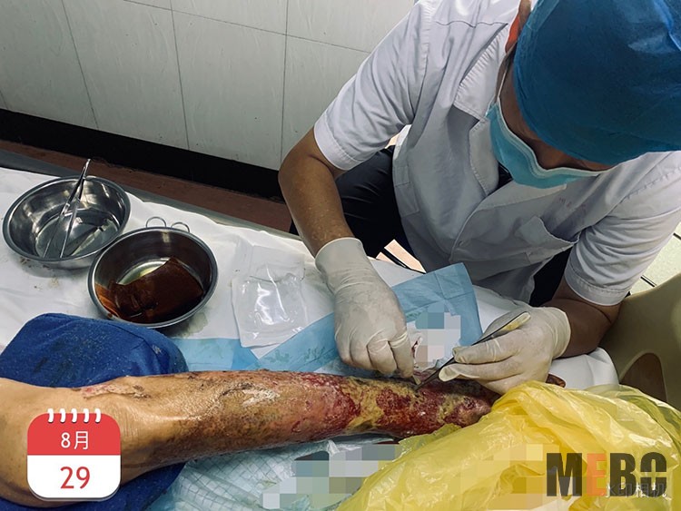 8月26日,《中國(guó)燒傷創(chuàng)瘍雜志》總編、北京榮祥再生醫(yī)學(xué)研究所副所長(zhǎng)、中國(guó)中西醫(yī)結(jié)合學(xué)會(huì)燒傷專(zhuān)業(yè)委員會(huì)秘書(shū)長(zhǎng)、北京市中西醫(yī)結(jié)合學(xué)會(huì)燒傷專(zhuān)業(yè)委員會(huì)副主任委員方進(jìn)勇在長(zhǎng)春市骨傷醫(yī)院進(jìn)行燒傷與慢性創(chuàng)面再生醫(yī)療技術(shù)培訓(xùn),會(huì)后對(duì)糖尿病足和感染創(chuàng)面患者進(jìn)行了換藥。