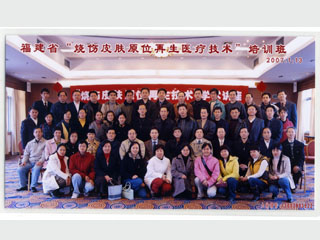 2007年1月12日~14日,由中國(guó)中西醫(yī)結(jié)合學(xué)會(huì)燒傷專委會(huì)主辦,福建省人民醫(yī)院承辦的福建省燒傷皮膚原位再生醫(yī)療技術(shù)規(guī)范化應(yīng)用培訓(xùn)班暨福建省中西醫(yī)結(jié)合燒傷專委會(huì)籌委會(huì)在福州市舉行。來(lái)自福建省人民醫(yī)院、福建省中醫(yī)學(xué)院附屬第二人民醫(yī)院、南京軍區(qū)福州總醫(yī)院及福州、廈門、漳州、泉州、龍巖三明、莆田等26家省、地市、區(qū)、縣各級(jí)醫(yī)院的近60名院長(zhǎng)、科主任、專家和相關(guān)業(yè)務(wù)骨干參加了學(xué)習(xí)班及福建省中西醫(yī)結(jié)合燒傷專委會(huì)籌備會(huì)議。福建省人民醫(yī)院院長(zhǎng)鄭健到會(huì)祝賀,學(xué)習(xí)班開始前舉行了簡(jiǎn)短的開幕式,福建省人民醫(yī)院外科主任黃小賓主持會(huì)議并致開幕詞,他在致詞中對(duì)生命再生科學(xué)的創(chuàng)立者、我國(guó)著名生命科學(xué)家、醫(yī)學(xué)家徐榮祥教授近年來(lái)在生命再生科學(xué)領(lǐng)域所取得的重大科研成果及人民網(wǎng)、新華網(wǎng)等國(guó)內(nèi)各大媒體近期長(zhǎng)篇報(bào)道徐榮祥教授發(fā)明的皮膚及胃腸等器官原位再生復(fù)原技術(shù)獲得美國(guó)專利等新聞給予了高度的評(píng)價(jià)。開幕式結(jié)束后,與會(huì)代表合影留念后學(xué)術(shù)活動(dòng)開始,中國(guó)中西醫(yī)結(jié)合學(xué)會(huì)燒傷專委會(huì)常委、北京美寶燒傷創(chuàng)瘍研究所副所長(zhǎng)、臨床部王洪生主任應(yīng)邀到會(huì)以生命再生科學(xué)研究新進(jìn)展及燒傷皮膚原位再生醫(yī)療技術(shù)臨床規(guī)范化應(yīng)用為題進(jìn)行了專題講座。