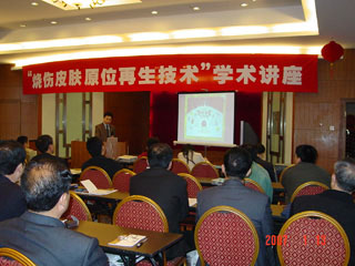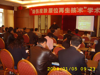 在授課期間,王洪生主任采用多媒體教學(xué)方式,利用大量詳實(shí)的臨床病例圖片資料,一是重點(diǎn)向與會(huì)的醫(yī)護(hù)人員展示了我國(guó)著名生命科學(xué)家,醫(yī)學(xué)家徐榮祥教授近年來(lái)在生命再生科學(xué)領(lǐng)域的研究新進(jìn)展及所取得的重大實(shí)驗(yàn)和臨床研究成果;并通報(bào)了徐榮祥教授在生命科學(xué)研究領(lǐng)域于2005年12月6日在美國(guó)獲得的三大發(fā)明專利;二是重點(diǎn)講述了燒傷皮膚原位再生醫(yī)療技術(shù)在燒傷臨床中的規(guī)范化應(yīng)用;三是重點(diǎn)講述了燒傷皮膚再生醫(yī)療技術(shù)在多學(xué)科的臨床應(yīng)用。