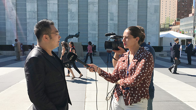 俄羅斯國際電視臺就聯(lián)大會議采訪徐鵬