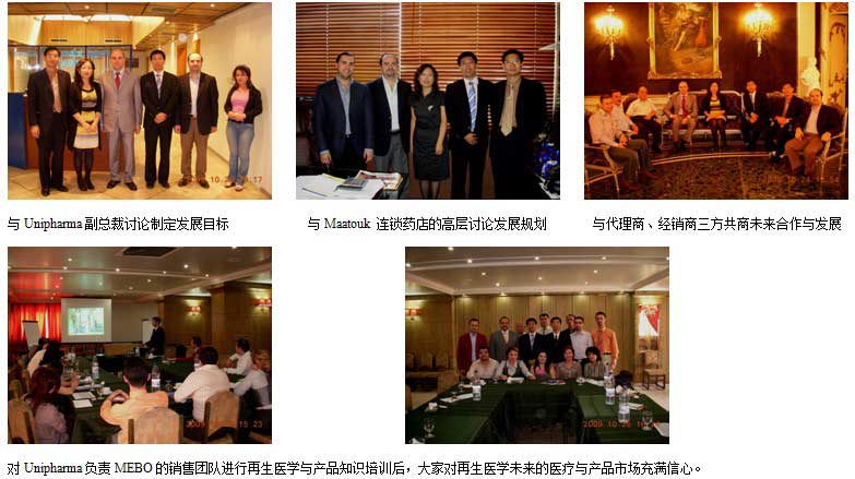 2009年10月22日至29日,為了在原有的OTC市場(chǎng)的基礎(chǔ)上,進(jìn)一步擴(kuò)大MEBO在敘利亞各醫(yī)院的使用范圍,并推廣到臨床多學(xué)科應(yīng)用,美寶國(guó)際部孫霞總經(jīng)理、國(guó)際部商務(wù)部劉鋼經(jīng)理和中國(guó)燒傷創(chuàng)瘍科技中心臨床部陳永翀主任一行,長(zhǎng)途奔波來(lái)到敘利亞首都大馬士革市,向代理商、經(jīng)銷(xiāo)商的高層領(lǐng)導(dǎo)介紹了再生醫(yī)學(xué)的研究應(yīng)用新進(jìn)展,共同商討制定了下階段的醫(yī)療開(kāi)發(fā)計(jì)劃和市場(chǎng)增長(zhǎng)目標(biāo),3方達(dá)成了戰(zhàn)略共識(shí),并馬上展開(kāi)和實(shí)施了一系列的技術(shù)培訓(xùn)、專(zhuān)題演講和臨床技術(shù)指導(dǎo)等工作,此次訪問(wèn)反響熱烈、收效明顯,預(yù)示著敘利亞的醫(yī)療開(kāi)發(fā)工作已經(jīng)進(jìn)入了新的時(shí)期。下面以圖片的方式做一個(gè)簡(jiǎn)要報(bào)道: