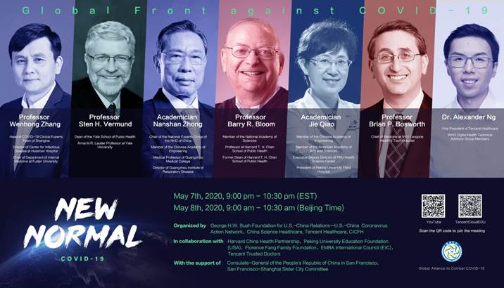 中國北京時間5月8日上午9:00(美東時間5月7日晚9點),國家衛(wèi)健委高級別專家組組長、中國工程院鐘南山院士,中國工程院、美國人文與科學院喬杰院士,上海市新冠肺炎臨床救治專家組組長、復旦大學附屬華山醫(yī)院傳染病中心主任張文宏教授,騰訊醫(yī)療副總裁兼醫(yī)療健康事業(yè)部負責人、世界衛(wèi)生組織數(shù)字衛(wèi)生技術咨詢小組專家成員吳文達醫(yī)生;美國國家科學院院士、哈佛大學公共衛(wèi)生學院Barry·Bloom教授,耶魯大學公共衛(wèi)生學院院長Sten·Vermund教授, 紐約大學朗格尼醫(yī)學中心Brian·Bosworth教授等來自中外抗疫一線的重量級專家將圍繞“抗擊COVID-19一線經驗與戰(zhàn)略的多邊分享”主題,共議新冠肺炎疫情防控經驗與挑戰(zhàn),為全球戰(zhàn)疫出力。