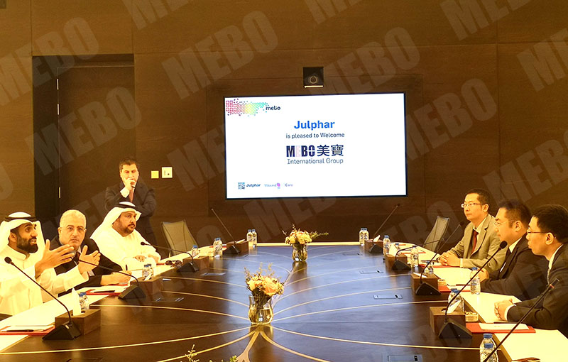 隨后,Julphar董事局主席Sheikh Saqer率副主席及高管團隊與徐鵬主席率領的美寶團隊就美寶集團與Julphar的商務合作開展了深入的會談,回顧了2009年以來雙方在商業(yè)合作領域取得成就,剖析了近年來市場發(fā)展遇到的問題及挑戰(zhàn),會談達成多項共識。Sheikh Saqer向徐鵬介紹了3名新任董事會成員,他指出過去兩年多來Julphar 的發(fā)展遇到一系列問題,包括與美寶集團及其高層之間的交流溝通,并提出了一系列的改進措施與建議。他強調未來必須建立董事局級別定期溝通渠道,保證雙方合作項目的順利執(zhí)行,也對未來雙方深化合作、再次騰飛充滿了信心。徐鵬提出精誠合作、互信共贏是雙方30年來緊密合作的基礎,雙方應在醫(yī)藥業(yè)務加深加強合作外,還要加大在國際交流、國際高端學術活動、社會企業(yè)責任等領域的深度合作,共同打造美寶-Julphar品牌。同時也特別指出雙方需要重視并探尋美寶技術產(chǎn)品在中東及非洲地區(qū)罕見?。ㄈ缦忍煨云つw缺損)的應用契機。