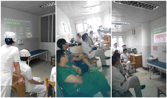 應(yīng)煙臺(tái)山醫(yī)院的邀請(qǐng),2014年7月9日下午北京燒傷創(chuàng)瘍研究所副所長趙瑞慶教授在該院舉辦了一期多科室燒傷創(chuàng)瘍?cè)偕t(yī)學(xué)與療法培訓(xùn)班。參加培訓(xùn)的醫(yī)務(wù)人員主要來自運(yùn)動(dòng)醫(yī)學(xué)科、手外科、創(chuàng)傷二科、骨腫瘤等科室的業(yè)務(wù)骨干。趙瑞慶教授在培訓(xùn)班上做了《21世紀(jì)濕性醫(yī)用敷料的新進(jìn)展》的講座。著重介紹了外科敷料的發(fā)展過程,干性敷料濕性敷料臨床運(yùn)用的對(duì)比,分析了干性敷料存在的缺陷。重點(diǎn)敘述了醫(yī)用復(fù)合敷料(創(chuàng)瘍貼)的作用機(jī)制臨床運(yùn)用五大優(yōu)勢(shì)(改善微循環(huán)學(xué)等)。三隔離臨床效果,在創(chuàng)面修復(fù)過程中的液化機(jī)制。
