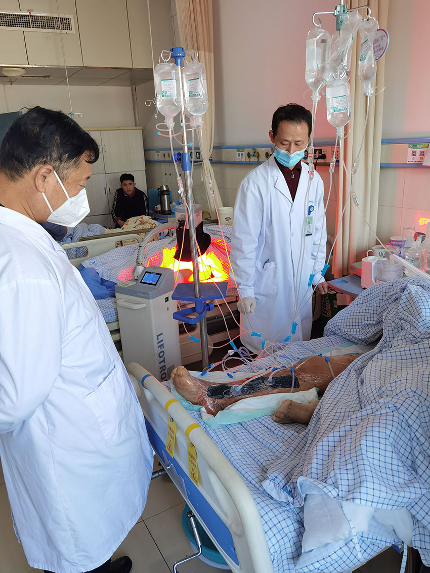 12月15日,再生醫(yī)學(xué)知名專家、《中國燒傷創(chuàng)瘍雜志》常務(wù)編委趙瑞慶主任應(yīng)襄垣縣人民醫(yī)院邀請,會診一例糖尿病足四級潰瘍創(chuàng)面病人,趙瑞慶教授規(guī)范應(yīng)用再生醫(yī)療技術(shù)治療,清創(chuàng),填塞油沙,并給出后續(xù)治療方案,醫(yī)護(hù)人員表示第一次感受到如此系統(tǒng)治療方案,受益匪淺!