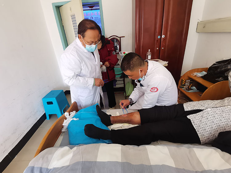 11月1日,《中國(guó)燒傷創(chuàng)瘍雜志》常務(wù)編委、燒傷創(chuàng)瘍?cè)偕t(yī)療技術(shù)臨床專家趙瑞慶,應(yīng)河北省退役軍人總院邀請(qǐng),在該院連續(xù)會(huì)診了六名患者(5例壓瘡.1例雙下肢糖足潰瘍)。事后在醫(yī)辦室對(duì)每位患者逐一進(jìn)行了病情分折,一對(duì)一制定了診療方案,受到當(dāng)?shù)蒯t(yī)務(wù)人員的熱情稱贊,趙教授在院期間還看望了97歲老八路郝志成同志。