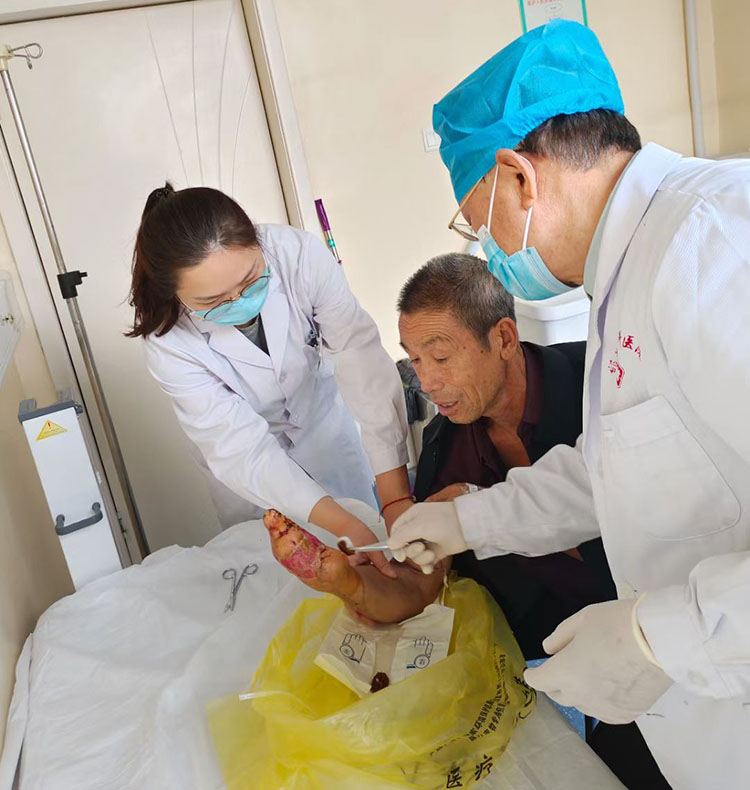 11月9日,應(yīng)邯鄲市骨科醫(yī)院之邀,《中國(guó)燒傷創(chuàng)瘍雜志》常務(wù)編委、燒傷創(chuàng)瘍?cè)偕t(yī)療技術(shù)臨床專家趙瑞慶,在該院會(huì)診了三例慢創(chuàng)患者。事后在醫(yī)辦室進(jìn)行了個(gè)案分析,制定進(jìn)一步治療計(jì)劃。趙教授針對(duì)糖足潰瘍講解了各種類糖足潰瘍的治療方法,肖主任深表感謝并表示,正當(dāng)病人治療困難時(shí),專家?guī)砹嗽偕t(yī)療技術(shù)規(guī)范操作的演示,又在理論上武裝了醫(yī)護(hù)人員頭腦,為今后科室的工作打下了堅(jiān)實(shí)基礎(chǔ)。