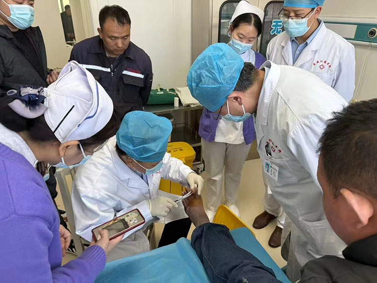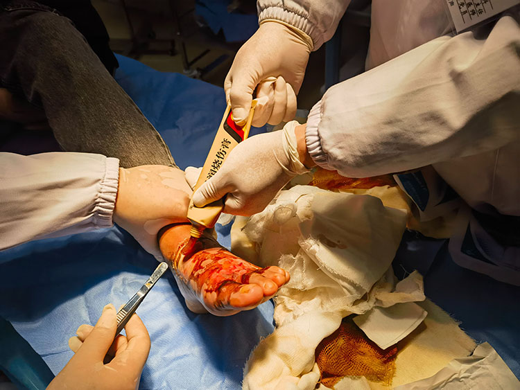 2025年1月6日,《中國燒傷創(chuàng)瘍雜志》編委、燒傷創(chuàng)瘍再生醫(yī)療技術(shù)臨床專家張強,應(yīng)邀來到潛山市立醫(yī)院,對整形外科收治的4例慢創(chuàng)患者進行會診并進行再生醫(yī)療技術(shù)規(guī)范換藥示范,還對患者后期的檢查、治療提出指導(dǎo)性意見,受到醫(yī)患雙方的一致好評!