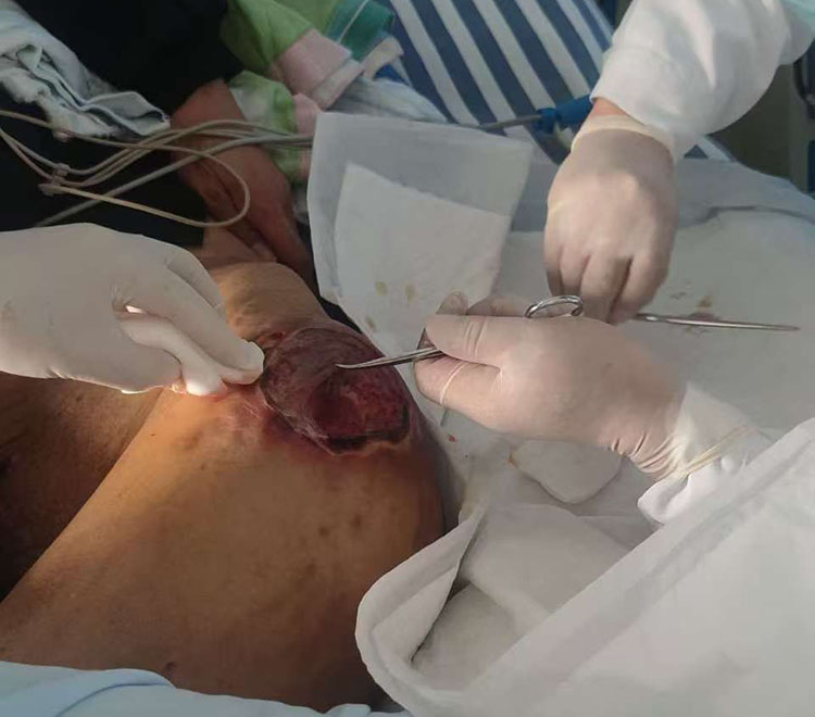 2025年1月13日,《中國燒傷創(chuàng)瘍雜志》編委、燒傷創(chuàng)瘍再生醫(yī)療技術(shù)臨床專家張強,應(yīng)邀來到中國人民解放軍聯(lián)勤保障部隊九九一醫(yī)院燒傷整形科,為一位壓瘡患者進行會診治療,張教授親自示范為患者進行清創(chuàng)換藥處理,指導(dǎo)醫(yī)生規(guī)范應(yīng)用再生醫(yī)療技術(shù)進行創(chuàng)面換藥治療,并針對臨床中遇到的問題進行了講解,得到了科室醫(yī)生的高度認可,患者家屬對張教授頂著炎熱親臨會診表示感謝!