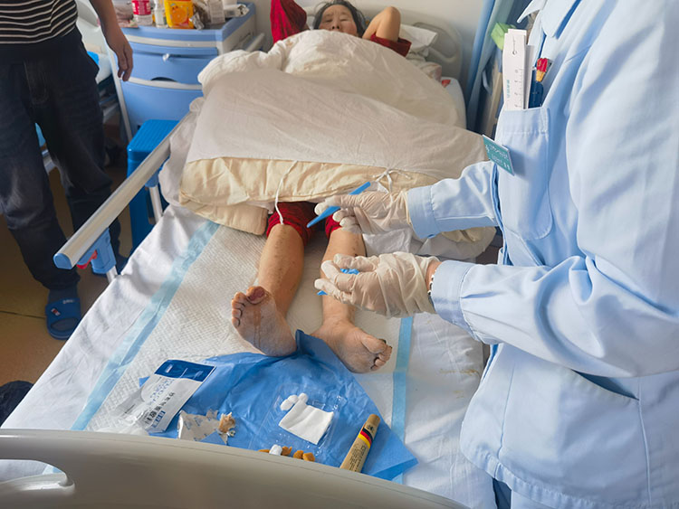 2024年3月8日,應廣東東莞市濱海灣中心醫(yī)院廖主任邀請,中國中西醫(yī)結(jié)合學會燒傷專業(yè)委員會常務委員,《中國燒傷創(chuàng)瘍雜志》副總編輯王洪生,到科室對多位糖尿病足和壓瘡患者進行了查房,親自示范規(guī)范應用再生醫(yī)療技術(shù)對相關(guān)進行慢性創(chuàng)面的處理,并對每個不同創(chuàng)面情況都提出了合理的治療方案,得到了醫(yī)護人員和患者家屬的一致好評!
