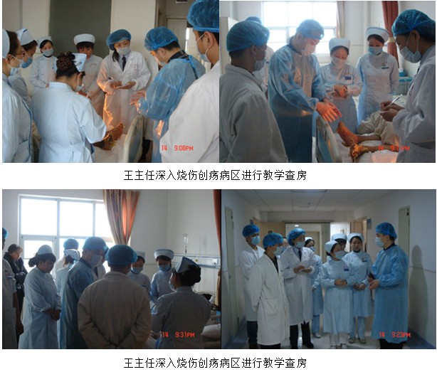 2013年4月15日上午9時(shí),王主任應(yīng)邀再次來(lái)到該醫(yī)院燒傷創(chuàng)瘍手外科病房對(duì)在該科室住院的燒傷創(chuàng)瘍患者進(jìn)行教學(xué)查房,并應(yīng)邀親自為1例雙足及小腿深度燒傷患者進(jìn)行清創(chuàng)換藥,向該科室的醫(yī)護(hù)人員展示再生醫(yī)療技術(shù)規(guī)范的創(chuàng)面清創(chuàng)換藥技術(shù),帶教結(jié)束后,王主任在該科室會(huì)議室又對(duì)該科室的醫(yī)護(hù)人員進(jìn)行再生復(fù)原療法在特重度燒傷系統(tǒng)治療要點(diǎn)進(jìn)行技術(shù)培訓(xùn)和交流。通過(guò)此次培訓(xùn),該科室的全部醫(yī)護(hù)人員基本掌握了再生醫(yī)療技術(shù)的規(guī)范化操作,對(duì)該科室的發(fā)展起到了重要作用。