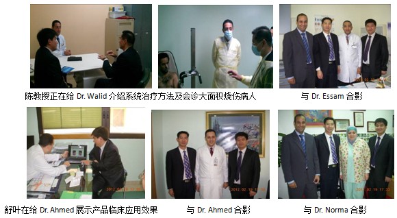 2月19日早上8:30, 美寶產品推廣團隊對吉達地區(qū)三家大型醫(yī)院的四名重點醫(yī)生進行了專訪。Dr. Walid是Dr. Soliman Fakeeh Hospital醫(yī)院整形科專家,使用再生醫(yī)療技術長達十年時間,目前正在結合再生療法進行白癜風治療的研究。在同該醫(yī)生講解完大面積燒傷創(chuàng)面處理原則后,陳教授在病房會診了一例80%面積的燒傷患者,并給出創(chuàng)面處理意見。隨后趕往Bugshan Hospital腹腔鏡外科主任醫(yī)師Dr. Essam。該醫(yī)生從1998年開始使用美寶在各類創(chuàng)面上,尤其是肛瘺患者。在介紹完疤痕平后,表示已經開始臨床使用,很高興能深入了解該產品的特點。最后,美寶團隊來到了Dr. Erfan&Bagedo General Hospital醫(yī)院的皮膚科及婦產科。皮膚科醫(yī)生Dr. Ahmed從1992年就開始使用美寶技術和產品。在詳細介紹了相關疤痕平產品信息后,該醫(yī)生表示馬上會進行臨床使用,并對美寶團隊的到訪表示誠摯的謝意。婦產科主任Dr. Norma是當?shù)刂膵D產科醫(yī)師,使用美寶技術長達15年。對剖腹產術后增生性疤痕治療的興趣很大,同時表示,很多病人為此非??鄲馈T诮榻B完疤痕平臨床效果后,該醫(yī)生驚呼神奇,并表示會總結使用后心得,撰寫疤痕平相關論文。