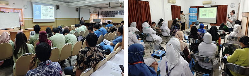5月21日至22日,交流活動來到了瑪瑯。代表團(tuán)首先在Dr. Saiful Anwar Malang Regional教學(xué)醫(yī)院舉辦專題講座,由整形重建外科專家Arviansyah教授主講,重點介紹再生醫(yī)療技術(shù)在急慢性創(chuàng)面修復(fù)中的優(yōu)勢,并通過豐富的臨床案例闡述了換藥流程中的操作要點,參會人員更加清晰的了解到了該技術(shù)在臨床換藥過程中的基本原則及在創(chuàng)面修復(fù)中的應(yīng)用價值。次日,活動在Lavalette綜合醫(yī)院繼續(xù)進(jìn)行,吸引了來自普外科、急診科等多個相關(guān)科室專家參與。整形外科專家Herman教授詳細(xì)講解了該技術(shù)在燒傷治療中的操作流程及機制,強調(diào)其在提升燒傷患者預(yù)后方面的獨特優(yōu)勢?;迎h(huán)節(jié)中,與會人員就實際應(yīng)用中可能遇到的問題踴躍提問,現(xiàn)場氛圍熱烈。