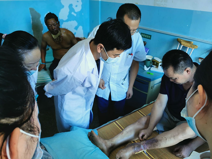2021年9月1日,中國(guó)中西醫(yī)結(jié)合學(xué)會(huì)燒傷專業(yè)委員會(huì)醫(yī)療部張強(qiáng)主任受邀來(lái)到南京鼓樓醫(yī)院集團(tuán)安慶市石化醫(yī)院,對(duì)該科收治的兩例大面積重癥燒傷患者進(jìn)行會(huì)診,參與燒傷創(chuàng)面規(guī)范換藥,并對(duì)規(guī)范應(yīng)用和預(yù)防新愈合創(chuàng)面起泡、潰爛及疤痕增生等和科室楊主任及經(jīng)治醫(yī)生進(jìn)行了深入交流,受到醫(yī)患雙方的好評(píng)!
