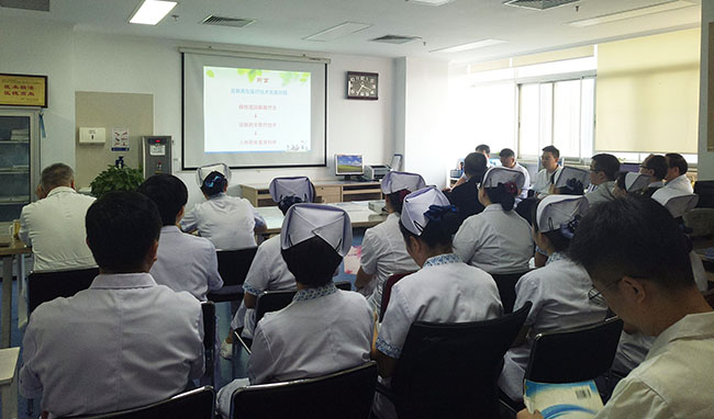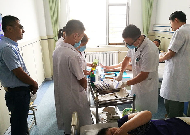 7月25日上午,燒傷創(chuàng)瘍?cè)偕t(yī)療技術(shù)專家、中國中西醫(yī)結(jié)合學(xué)會(huì)燒傷專業(yè)委員會(huì)委員金金黨軍教授到河南信陽市第二中醫(yī)院內(nèi)科進(jìn)行壓瘡、糖尿病足領(lǐng)域的授課,答疑,第二中醫(yī)院內(nèi)科孫志明主任及全體醫(yī)護(hù)人員參加。通過此次培訓(xùn),大家基本掌握了壓瘡、糖足治療換藥的規(guī)范程序,對(duì)以后診治此類患者充滿信心;25日下午,金教授又前往信陽職業(yè)技術(shù)學(xué)院第一附屬醫(yī)院外四科進(jìn)行授課、答疑、會(huì)診。