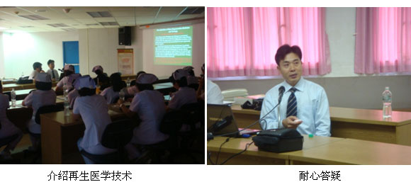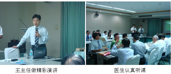 3月1日,我們應(yīng)邀前往位于曼谷市大型私立醫(yī)院Ramkumhang Hospital進(jìn)行全新的醫(yī)療開(kāi)發(fā)工作。聽(tīng)課醫(yī)生分別來(lái)自外科,內(nèi)科及整形外科,王洪生主任以再生醫(yī)療技術(shù)的臨床應(yīng)用為主題,生動(dòng)地向聽(tīng)課人員展示了再生醫(yī)學(xué)在燒傷、創(chuàng)瘍等多領(lǐng)域的臨床應(yīng)用,圖文并茂,醫(yī)生們認(rèn)真聽(tīng)講,對(duì)MEBT/MEBO興趣較大。會(huì)后兩名重點(diǎn)醫(yī)生跟王主任就微粒皮種植術(shù)進(jìn)行進(jìn)一步交流,王主任針對(duì)問(wèn)題都給與了耐心而專(zhuān)業(yè)的解答。
